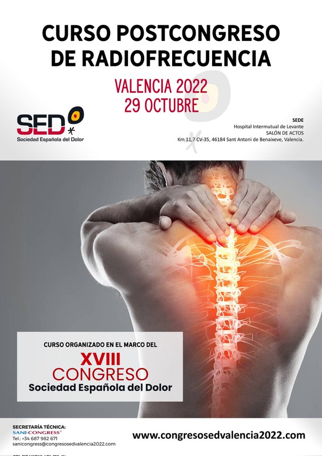 Y una PARTE TEÓRICA en la que se abordaron los Fundamentos básicos de la radiofrecuencia como técnica analgésica, Protección radiológica, Radiofrecuencia de la articulación sacroilíaca Radiofrecuencia del ramo medial lumbar, Radiofrecuencia del ganglio de la raíz dorsal lumbar y Epidurolisis y Radiofrecuencia intracanal.
