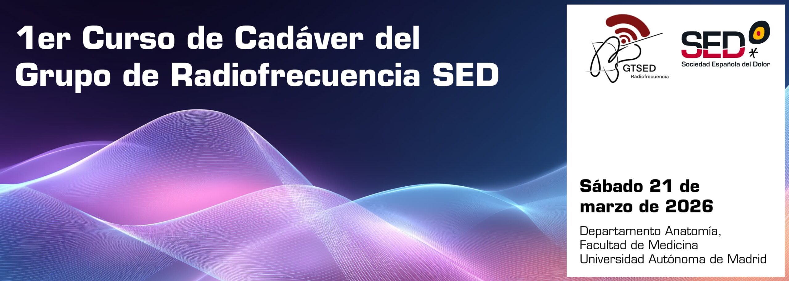 El Grupo de Radiofrecuencia de la Sociedad Española del Dolor – SED, organiza este primer programa académico de taller especializado en técnicas de radiofrecuencia para el tratamiento del dolor en cadáver, desarrollándose íntegramente en el Departamento de Anatomía de la Universidad Autónoma de Madrid.