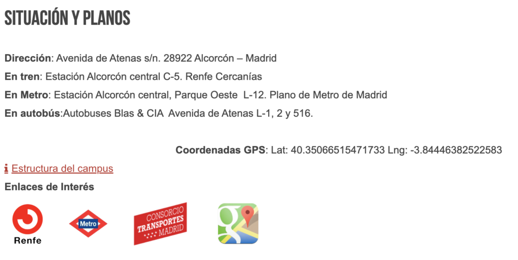 Cómo llegar al Campus de la Facultad de Ciencias de la Salud de la URJC Alcorcón