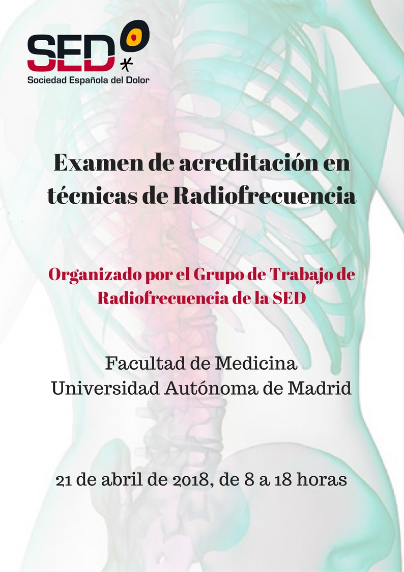 El Grupo de Trabajo de Radiofrecuencia de la SED organiza su V Examen de acreditación en Técnicas de Radiofrecuencia el 21 de abril de 2018.