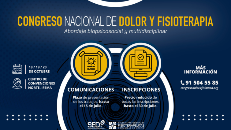 Del 18 al 20 de octubre se desarrollará en IFEMA Madrid el mayor congreso sobre el dolor organizado desde el punto de vista de la Fisioterapia con una visión multidisciplinar. La Sociedad Española del Dolor (SED) y el Colegio Profesional de Fisioterapeutas de la Comunidad de Madrid (CPFCM), se han unido para poner en marcha esta iniciativa que pretende aportar nuevas formas de enfocar y tratar el dolor crónico desde un abordaje global, en todas las áreas que afectan a estos pacientes: biológica, psicológica y social.